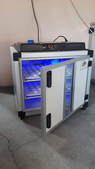 Nous sommes en possession d'un couvoir d'une capacité de 18.000 Oeufs a couver et d'un éclosoir de 10.000 poussins.